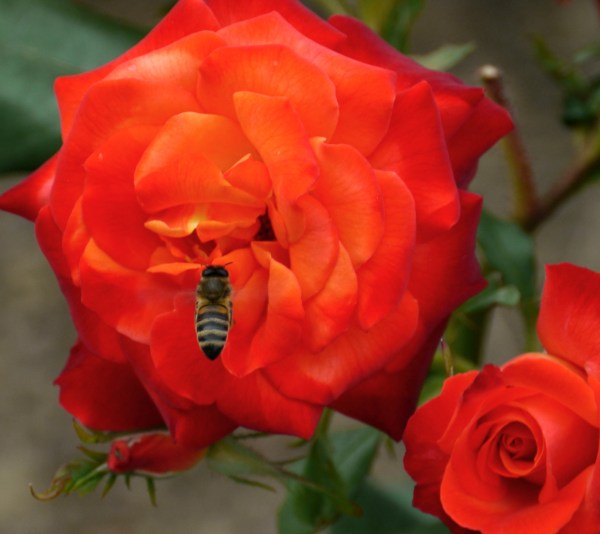 We had been over to check on our new neighbours, and it was eerily quiet. There could be several reasons for this – the bees were still fast asleep, tucked up in their beds, or they had perished over the ordeal of being moved, or they had all winged it back to the hustle & bustle of Colomiers or they were all out busily gathering pollen.