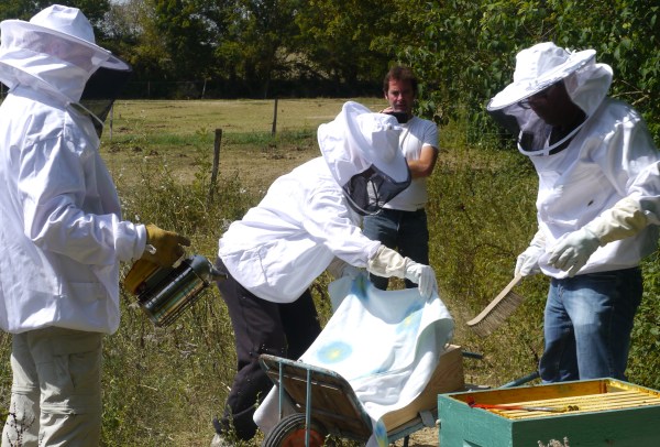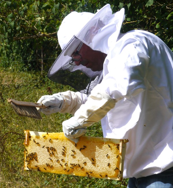 So, a job well done and time to celebrate. There was a small matter of a sticky floor to clean, and then we rushed back to the house, stopping at the cheese shop, so that we could sit and relish the very first pot of Jean-Philippe’s very own honey.